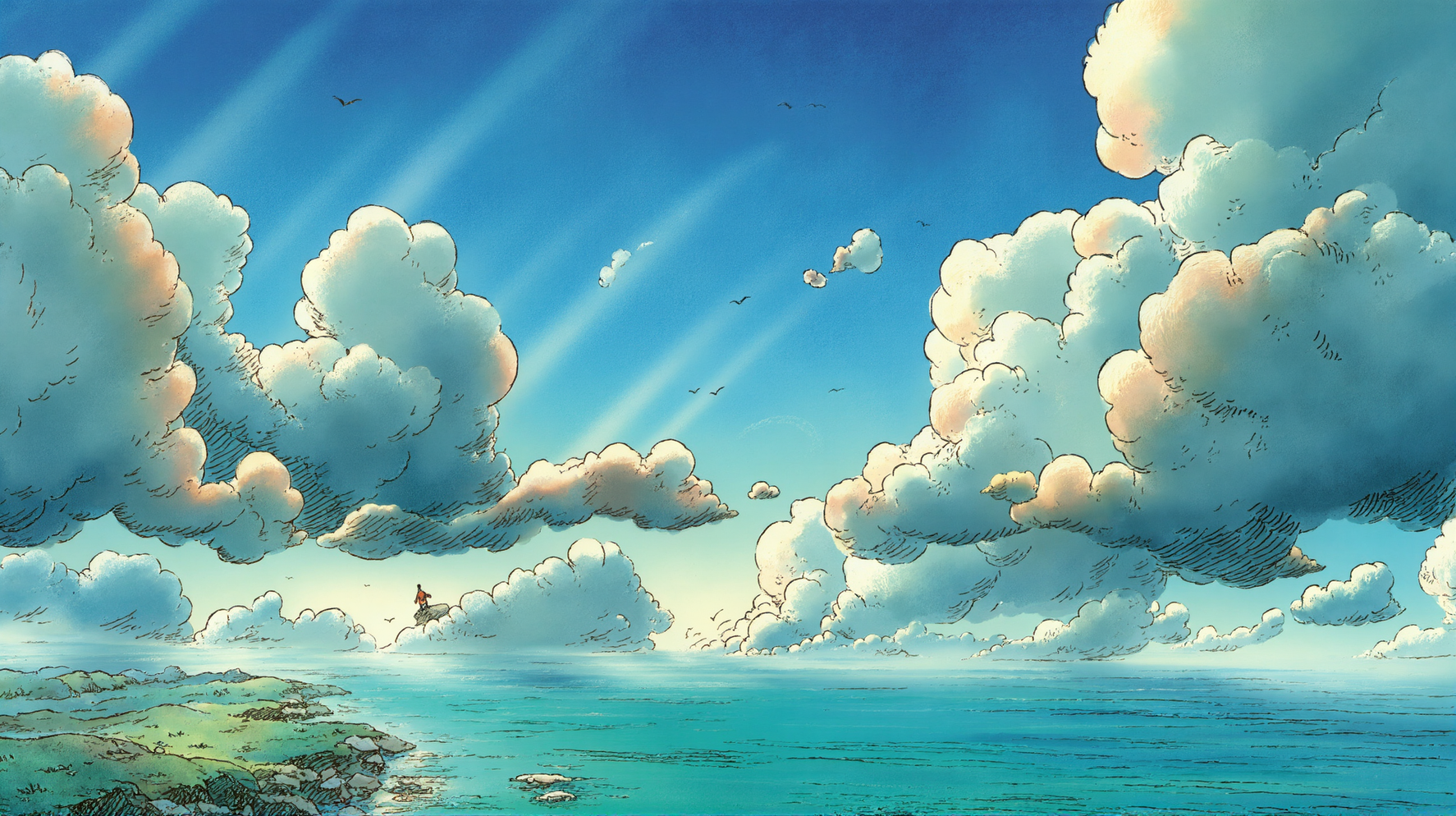 The clouds are gentle travelers who drift across the sky with soft voices and warm light.They often speak to Lumo like older friends—calm, kind, and a little bit playful.