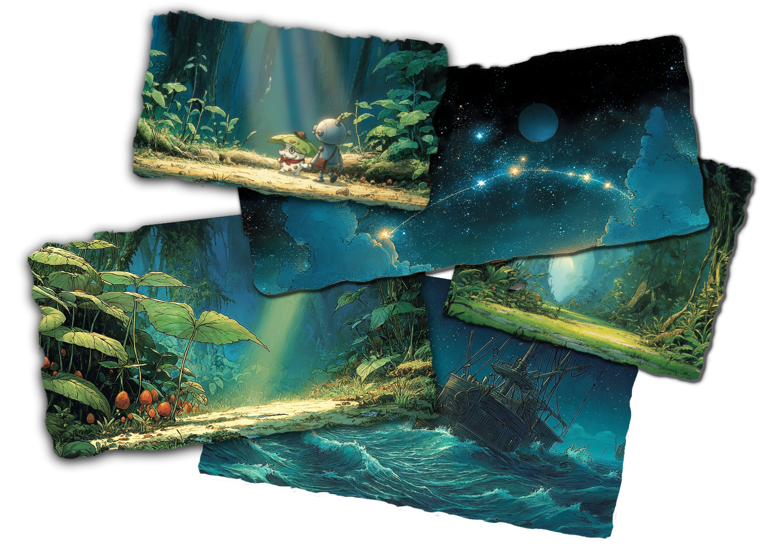 Step into the worlds Lumo travels through — soft adventures, quiet memories, gentle friends, and the mysteries that unfold along his journey.